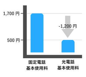 一般家庭で多く使われているアナログ回線の基本使用料に比べると、1/3以下の基本使用料でお使いいただけます。